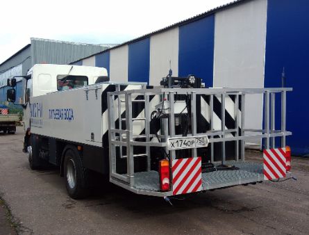 ПО ЗАПРОСУ ЗАКАЗЧИКА МАШИНА ДЛЯ ЗАПРАВКИ ВС ПИТЬЕВОЙ ВОДОЙ МОЖЕТ ОСНАЩАТЬСЯ ГИДРАВЛИЧЕСКИМ ПОДЪЕМНИКОМ С ВЫСОТОЙ ПОДЪЕМА ДО 3 М И ГРУЗОПОДЪЕМНОСТЬЮ 200 КГ