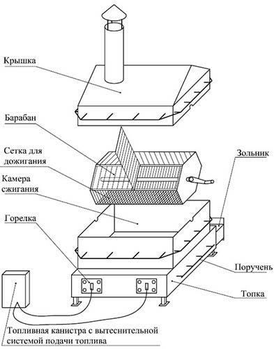 Предназначена для утилизации трупов птиц и мелких животных методом кремации в полевых условиях.